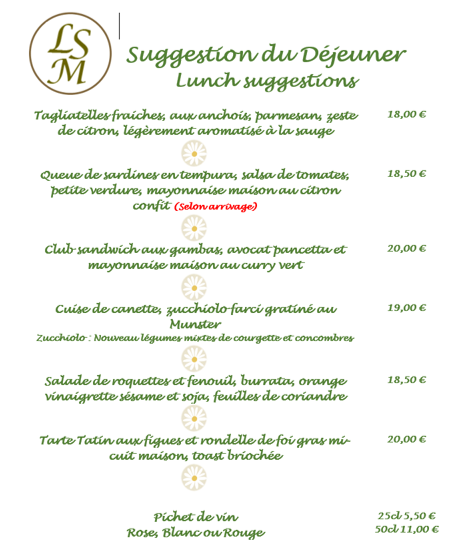 Pour le déjeuner, nous proposons des plats spéciaux à environ 20 euros.